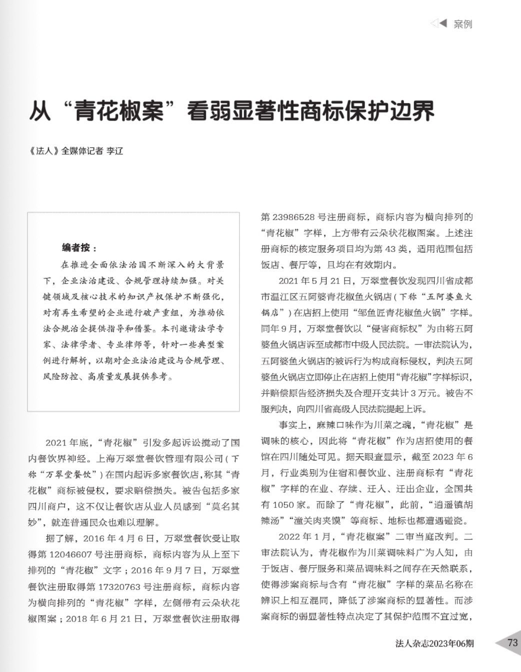 南充辉知简讯 | 辉知队黄俊益律师应“法治日报”旗下杂志邀请,就“青花椒”案发表专家点评